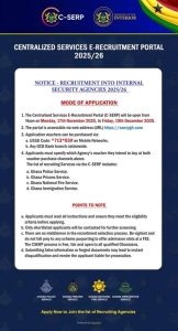 The recruitment process for the Internal Security Agencies officially begins today, Monday 17/11/25.